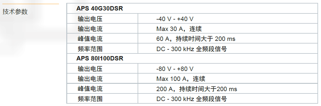 APS xxxxDSR系列配置了四象限雙極性放大器,能夠產生電壓跌落、短時中斷和多種電壓變化,模擬可在線束上測得的各種電壓變化現象,輸出內阻可以調節,且內置了信號產生器,使用者可以透過PC軟體編輯並輸出空白的任意波,也可作為電池供電模擬和直流電壓源使用。在實驗室測試時,APS xxxxDSR系列可替換車輛蓄電池。 Pulse 2b、Pulse 4、正弦波雜訊和其它複雜電壓變化類比測試都可以由APS xxxxDSR系列模擬器來實現。非常適合ISO 7637/16750傳導瞬態測試。 APS xxxxDSR系列擁有模擬符合國際標準和眾多汽車廠商標準要求的多種電池供電波形。作為強大的直流電源,在汽車瞬變脈衝測試中為被試設備供電,48 V、42 V、24 V和12 V四種供電電壓類型全滿足。